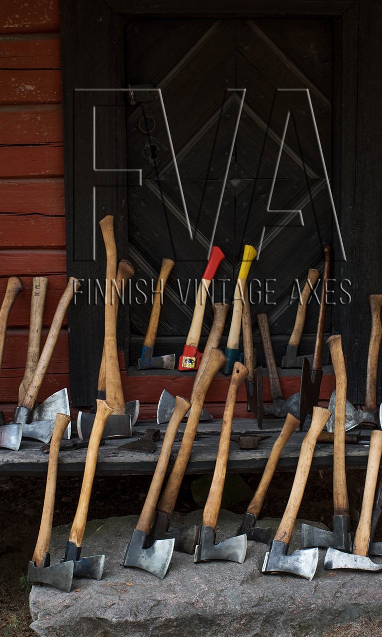 Over 55 Finnish vintage axes were presented. Years 1700s-1960s.